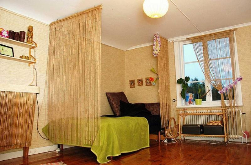 - تجدر الإشارة إلى أن ستارة الخيزران الموجودة على الباب يمكن أن تكون عنصرًا منفصلاً في الداخل وملحقًا بالتصميم الشامل للغرفة أو المنزل بالكامل (الشقة).