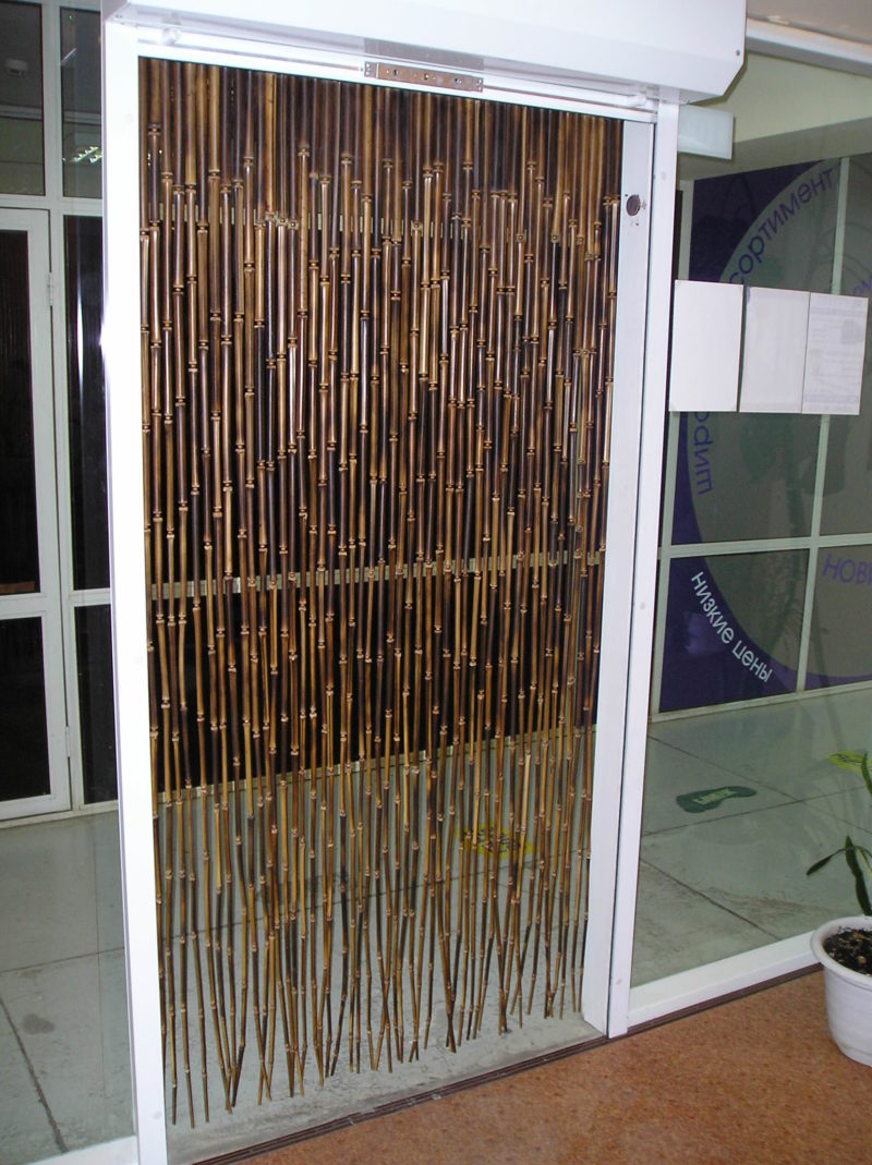 في كثير من الأحيان ، يتم تثبيت الستائر فقط على الأبواب الداخلية ، والتي تستخدمها كزخرفة وكحد أقصى للمساحة. أصبحت المنسوجات قديمة تقريباً ، لكن الستائر المصنوعة من الخيزران على الباب تكتسب شعبية متزايدة. هذه الستائر مثالية لباب المطبخ ، شرفة ، لوجيا ، وحتى في غرفة المعيشة وغرفة النوم.