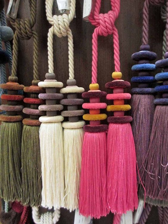 فرش للستائر - هي خيوط متصلة في كعكة ، والتي يتم ربطها في المنتصف بشريط مكرر بنمط غير عادي. لإنتاجهم يستخدمون الأورجانزا والقطن والصوف والمواد الاصطناعية. منذ العصور القديمة ، يفضل الأشخاص النبلاء المنتجات المزينة بالأحجار الكريمة والمعادن شبه الثمينة.