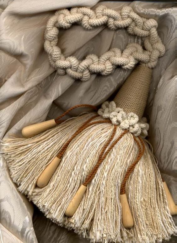 سوف تساعد عناصر الزخرفة النسيجية على إنشاء تصميم فريد وإضافة ملاحظات رائعة إلى أي غرفة. من الضروري تحديدها بناءً على لوحة الألوان الداخلية. على سبيل المثال ، سيكون الملمس الناعم مكملاً مثالياً للستائر والمنتجات الضخمة والكبيرة - شنقًا للاستلام.