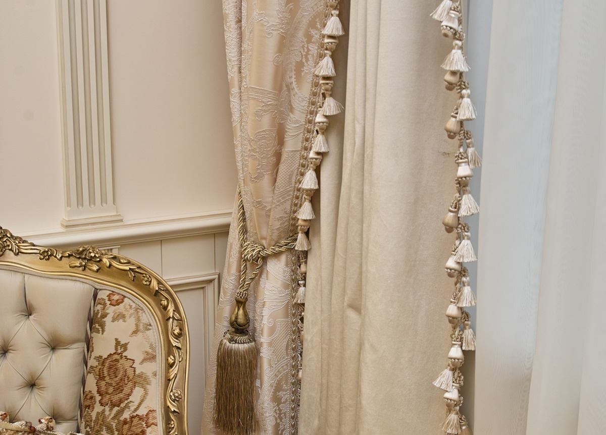 العنصر الشرقي - هامش مثالي لأسلوب الإمبراطورية ، وكذلك للستائر الفرنسية والنمساوية.
