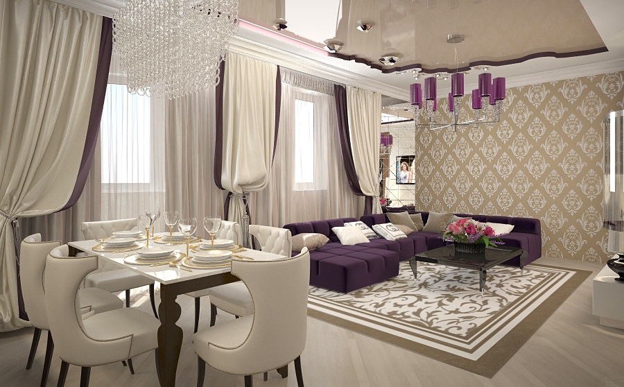 في كثير من الأحيان استخدام فرش في زخرفة الستائر في غرفة المعيشة وغرفة النوم ، وهذا يؤكد على وظيفة الغرفة.