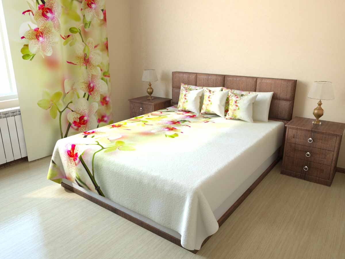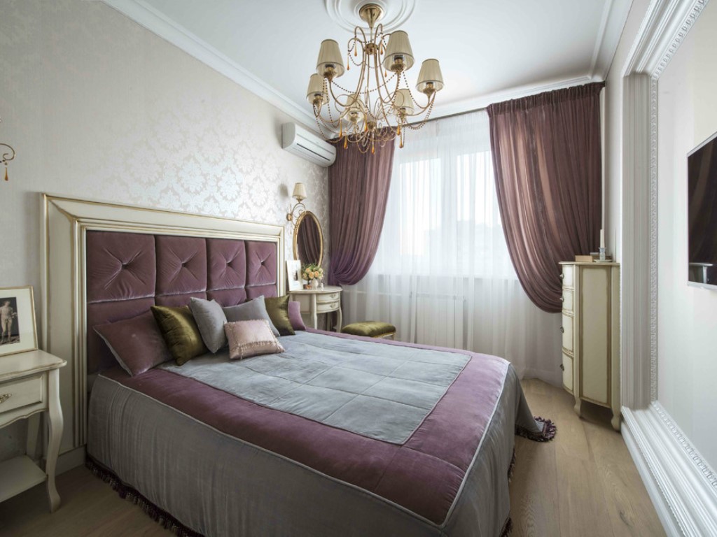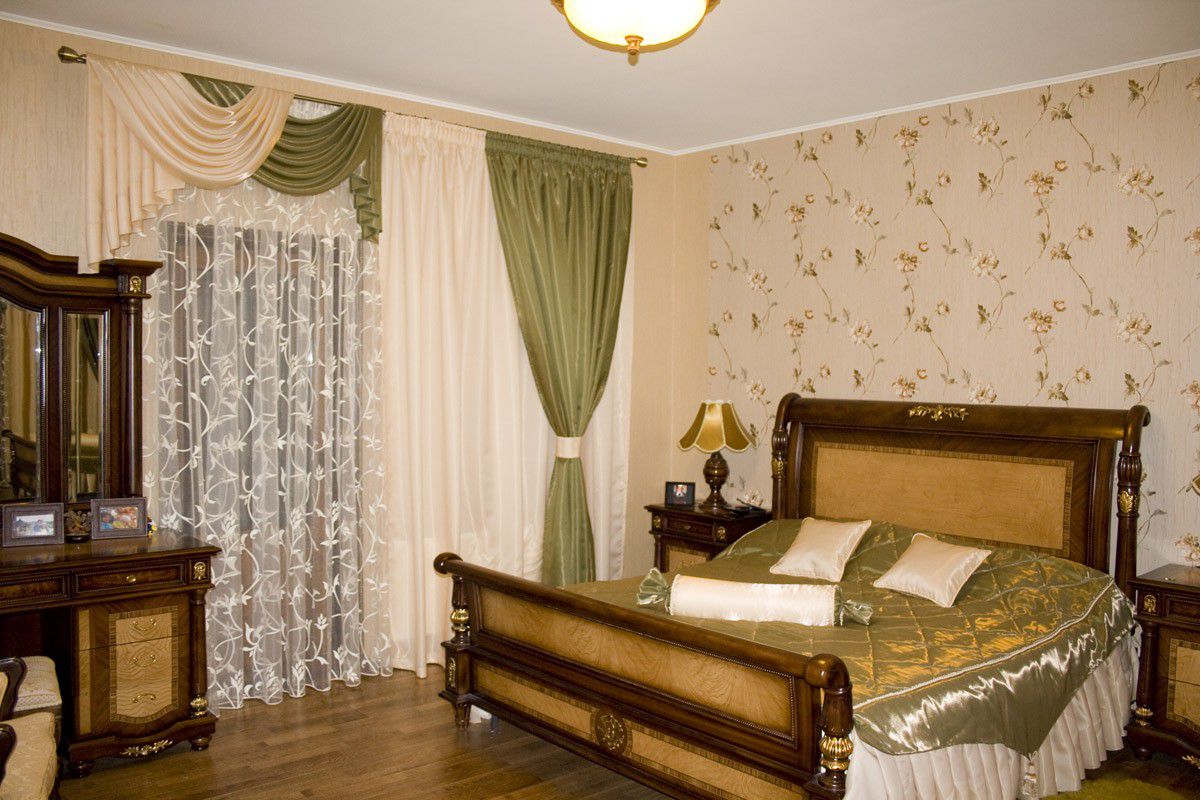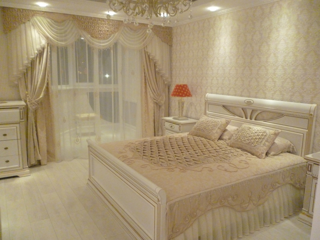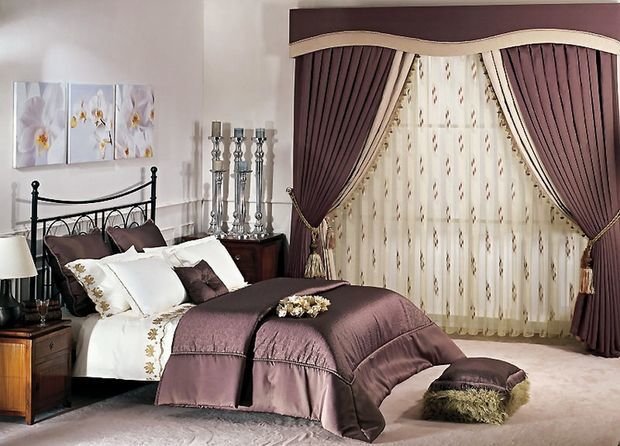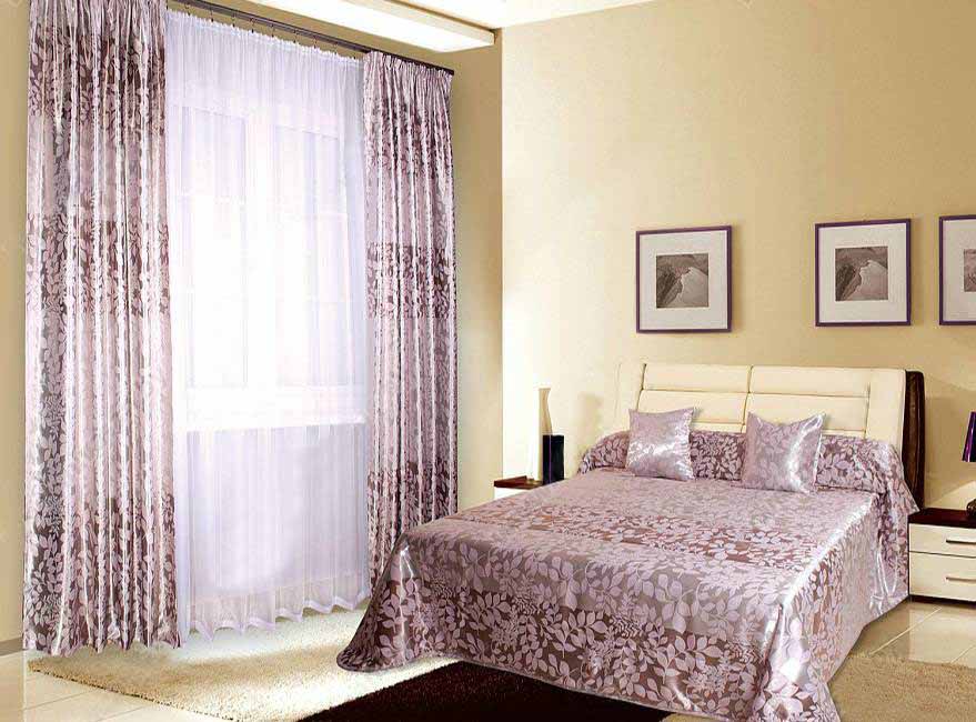 عند اختيار مجموعة من أغطية الأسرة والستائر ، من الضروري مراعاة الوقت الذي يجب أن يتم دمجه بشكل جيد مع ديكور غرفة النوم.