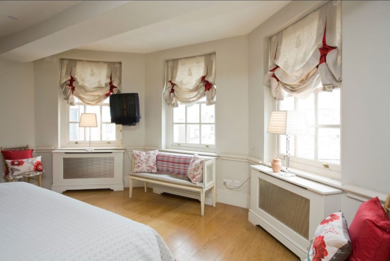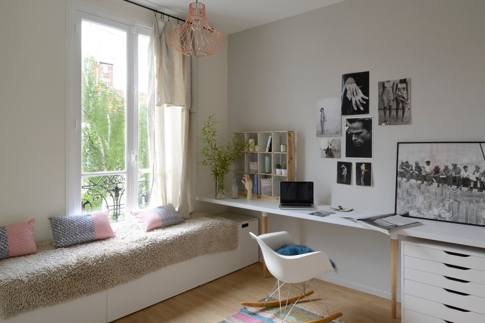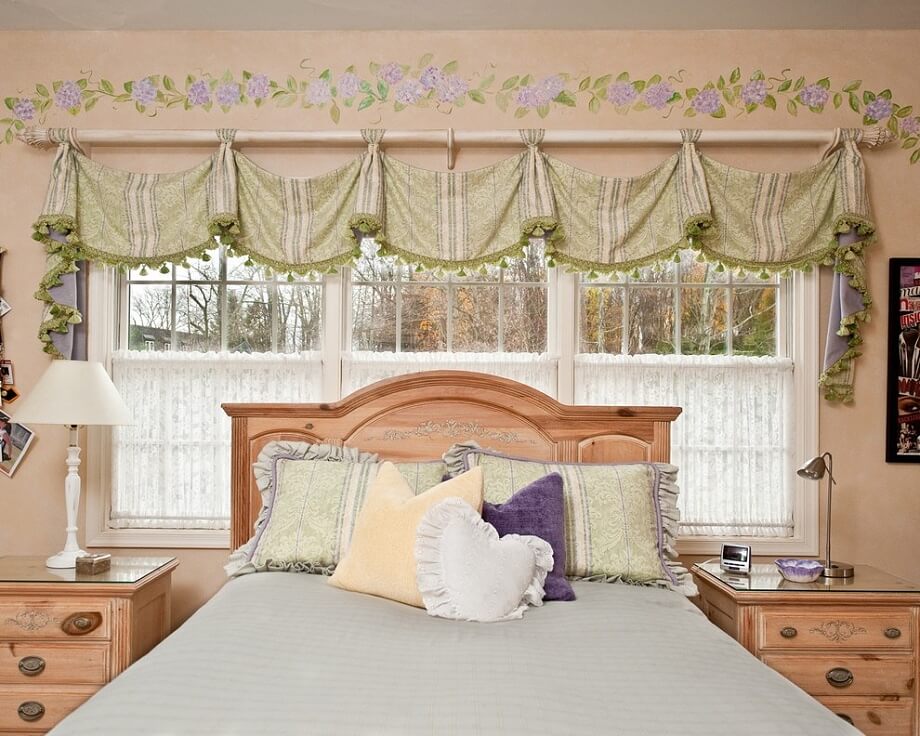 تتيح لك هذه النماذج من الستائر توفير مساحة تحت النافذة لتثبيت الأثاث ، على سبيل المثال ، سرير أو طاولة ملابس.