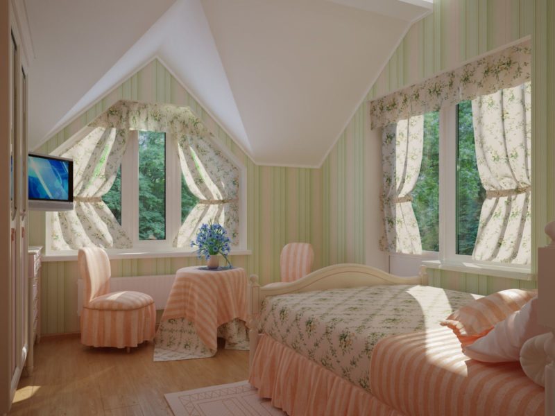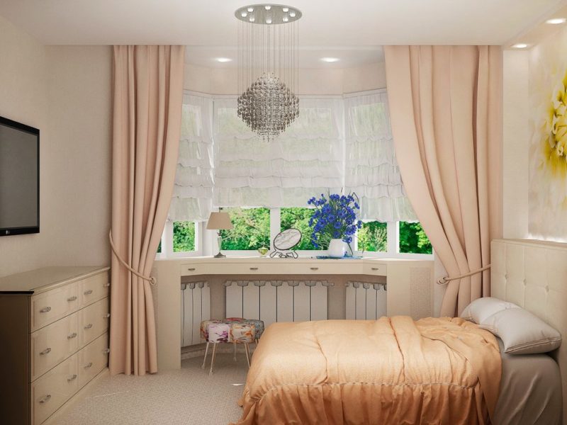 للداخلية من غرف النوم الصغيرة ، يمكن أن يكون تول قصير أو الستائر خلاص حقيقي.