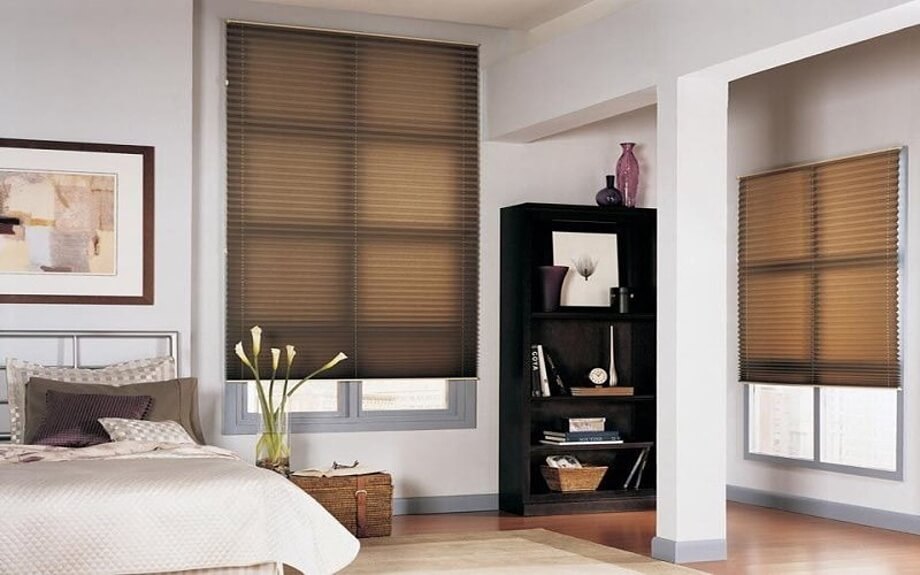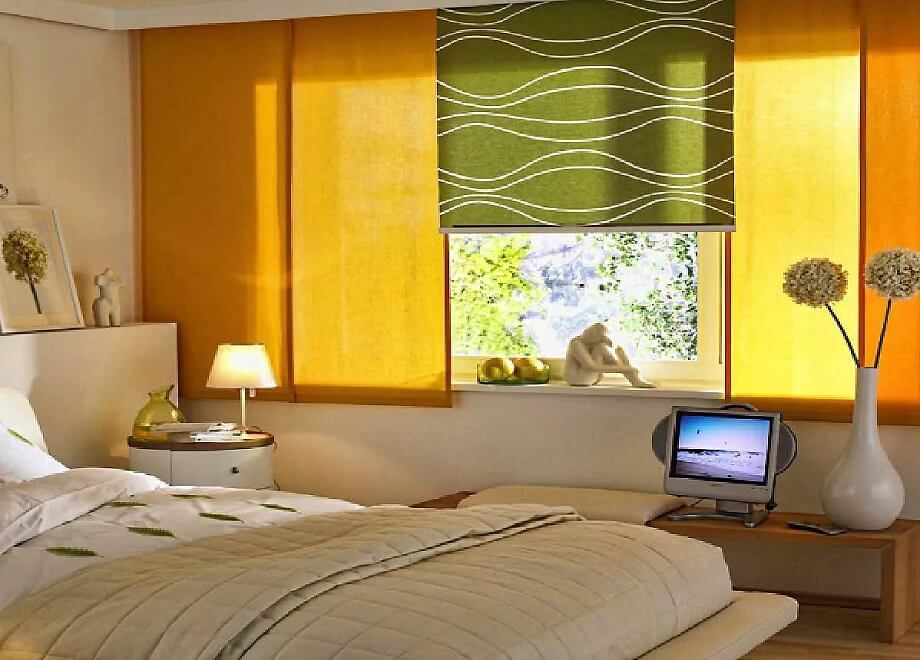 في غرفة النوم ، تكون مثل هذه الستائر مناسبة أيضًا بسبب ملمس الإضاءة والتطبيق العملي.