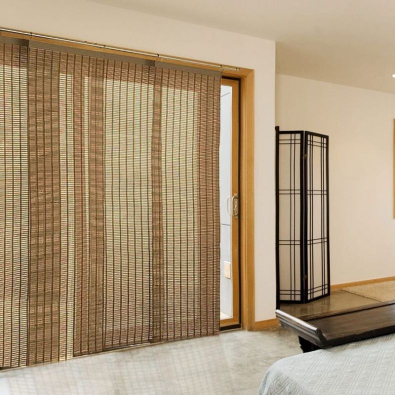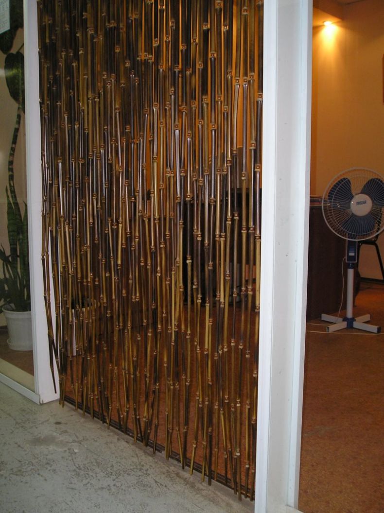 يمكن استخدام هذا المنظر ليس فقط كتداخل للمساحة الداخلية ، ولكن أيضًا كخيزران أو ستائر خشبية على الباب.