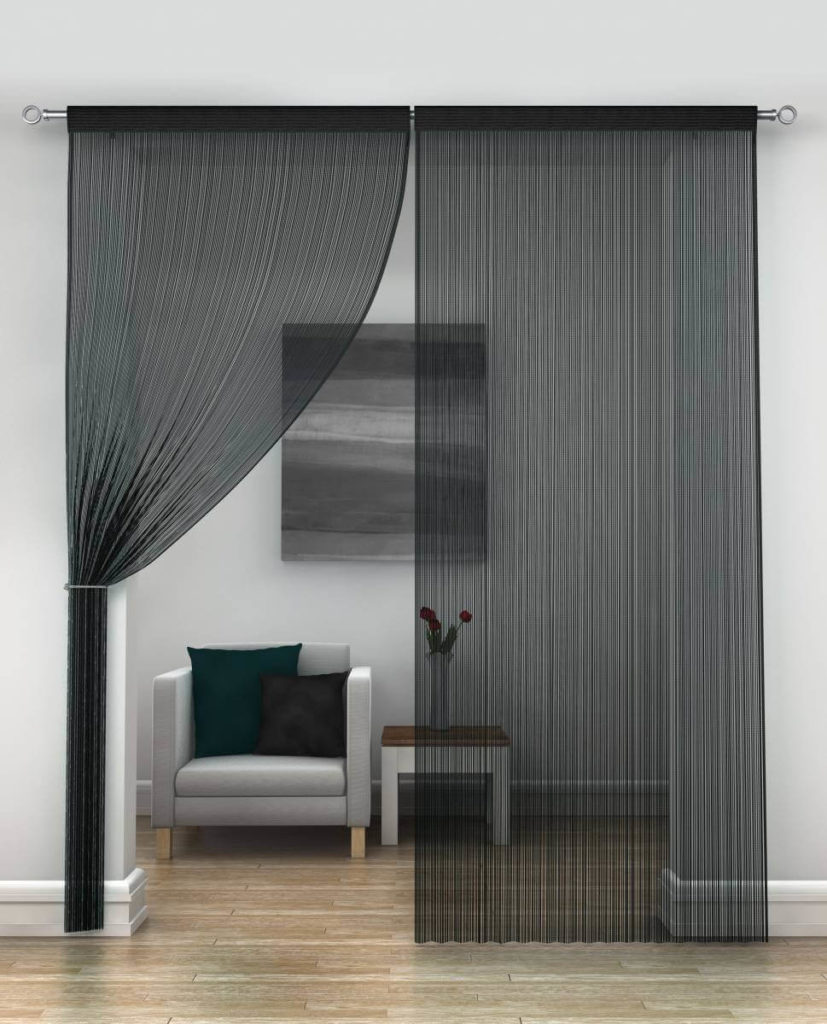 - Nityny هي طريقة عرض غريبة نوعا ما للستائر الموجودة على القوس الداخلي ، وكذلك ستائر حبة (ستائر حبة هي بالأحرى نسخة محسنة من ستائر الخيوط من ستائر منفصلة ، ولكن لا يزال ينبغي فصلها). يمكن أن تكون بنية بيانات الستائر ذات معايير مختلفة ، رفيعة وسميكة ، من حلقة واحدة أو عدة ، كما يمكن أن تكون بألوان مختلفة. مناسب لأي ظروف ، ولكن ليس في كل مكان سيبدو جميلًا.