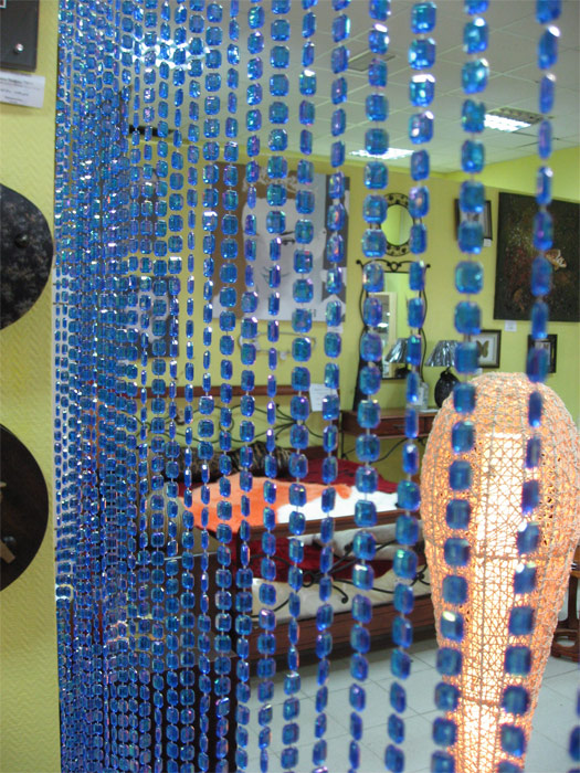 - الستائر الخرزية هي بالفعل نوع غريب من الستائر الداخلية ، ونادراً ما توجد في الغرف العادية. يستخدم هذا النوع كبديل للستائر التقليدية. يضيفون إلى الداخل مظهراً إيجابياً ، وينثرون الوهج في جميع أنحاء الغرفة. واحدة من مزايا الستائر حبة هي أنها سهلة لرعاية ، وعيوبها هي أنها تؤدي وظيفة الديكور فقط.