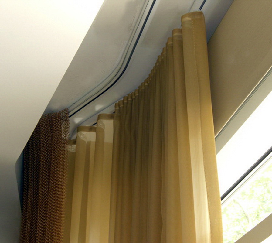 سقف اطارات الستائر تأتي في أشكال مختلفة: الشخصية ، الرغيف الفرنسي ، سلسلة وجولة. يمكن تعليق الستائر من هذا النوع على الطراز الفرنسي والنمساوي والكلاسيكي والياباني والإيطالي والروماني.