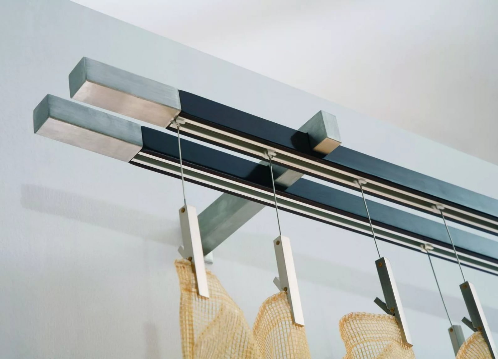 - صف واحد مناسبة للستائر من الأورجانزا والستائر الخفيفة. تستخدم السنانير لإصلاح المنتج.