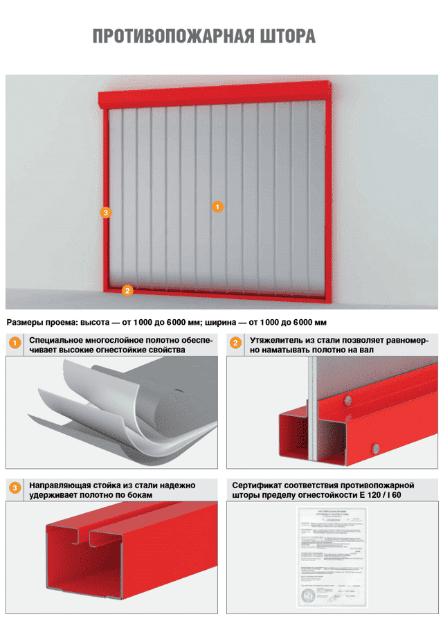 عملية التحكم مصراع التلقائي. المنتجات مجهزة بجهاز استشعار خاص ، محرك كهربائي. في حالة نشوب حريق ، يتم تشغيل المستشعر ، ويبدأ المحرك في خفض الستار تدريجيًا.