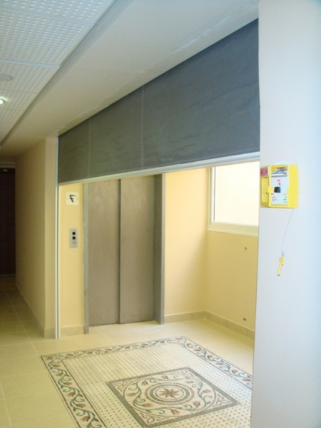 الستائر المقاومة للحريق عبارة عن إطار بناء مزود بشبكة مصنوعة من مواد مقاومة للحريق.