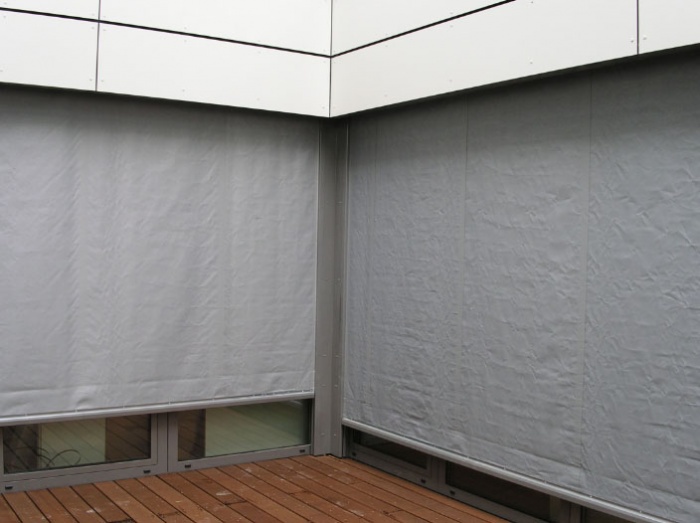 في المظهر ، ستائر في الحالة المغلقة تشبه الإنشاءات لفة.