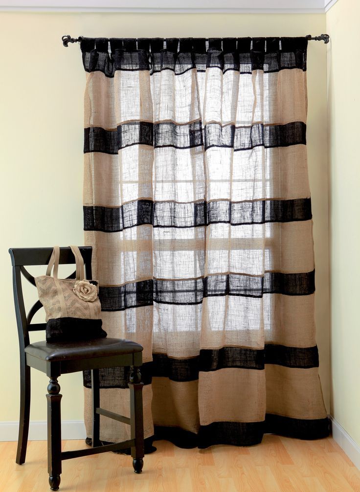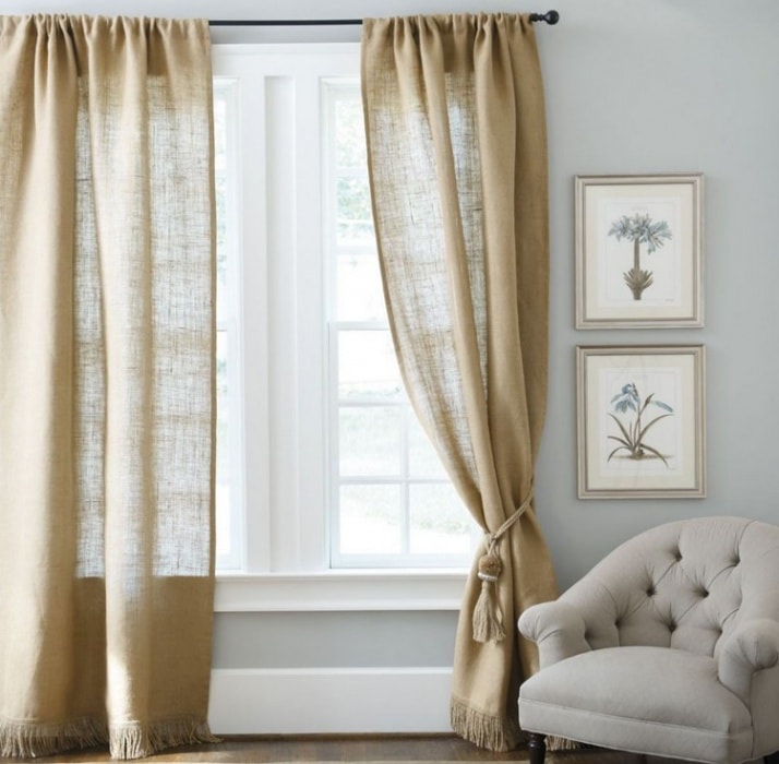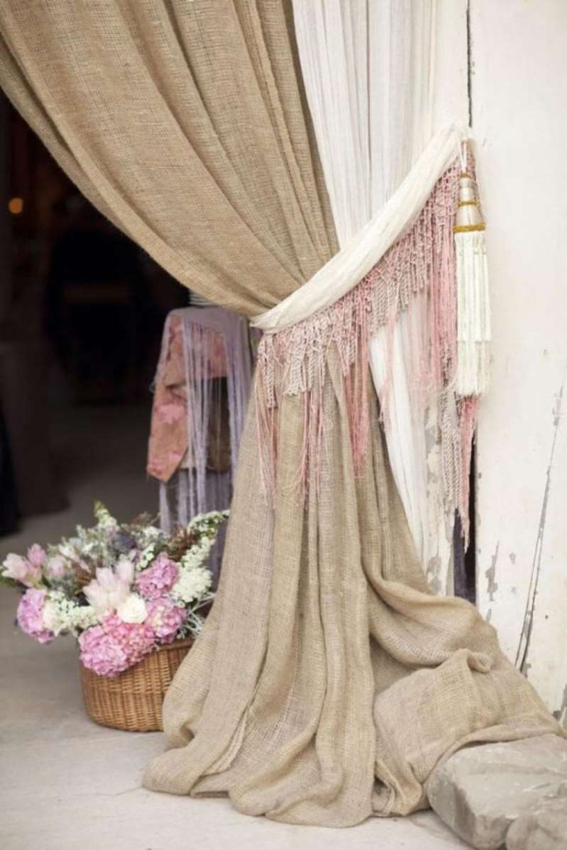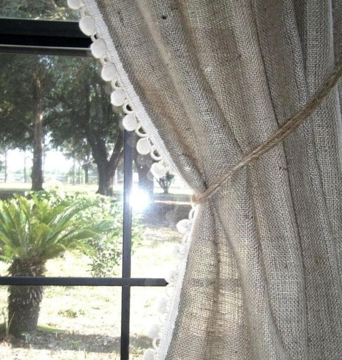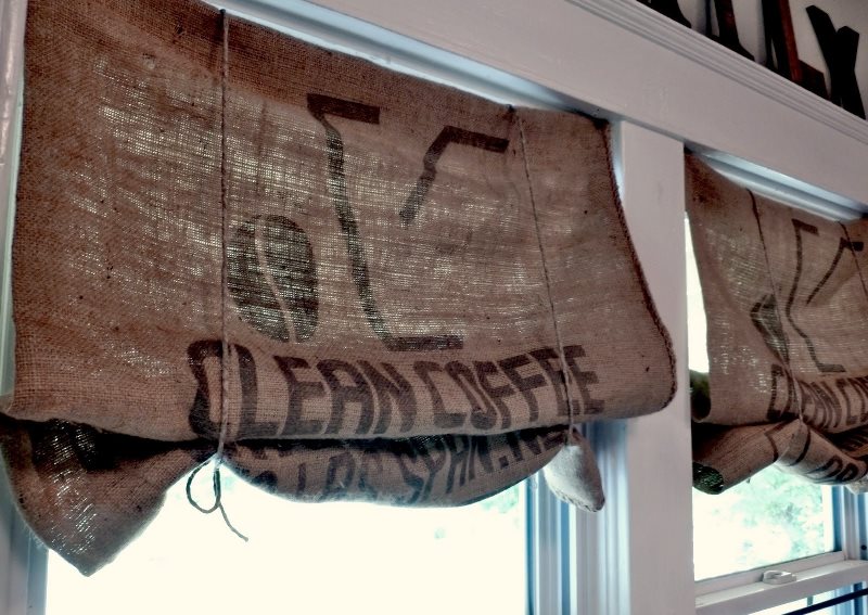 لا يمكنك صناعة الملحقات الداخلية الجميلة فقط من الخيش ، ولكن يمكنك أيضًا خياطة الستائر العملية والأصلية.