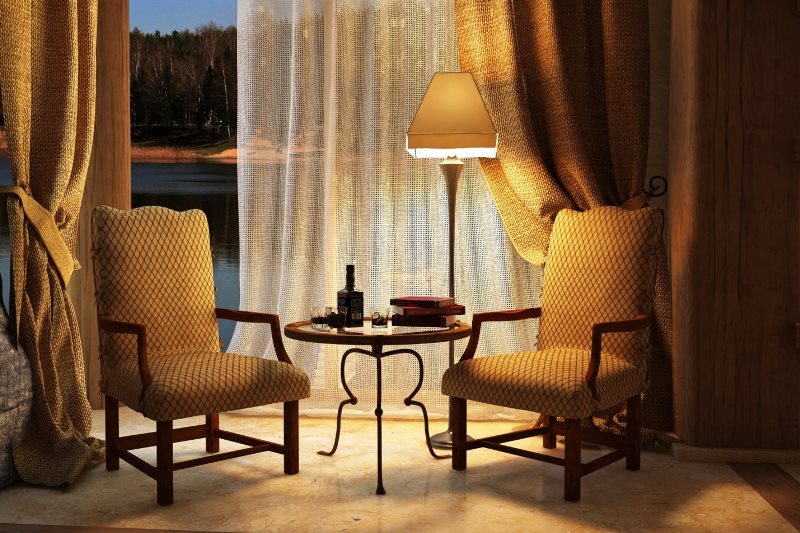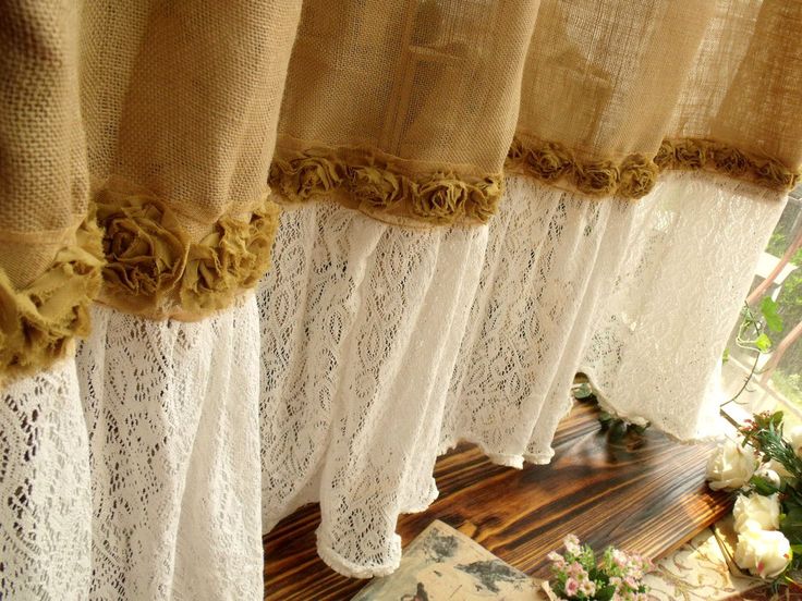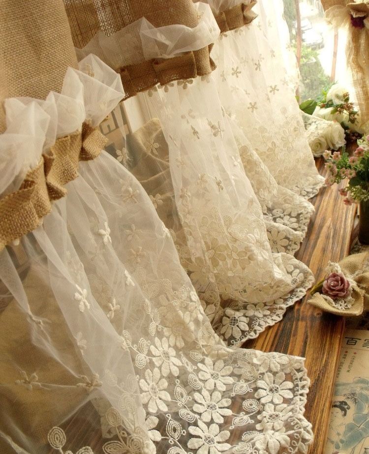إذا كان القماش "الممل" مكملاً فعليًا بالدانتيل والستارة الجميلة ، يتم إنشاء شعور بالرومانسية على الفور ، وتصبح اللوحة الخشنة أخف وزناً.