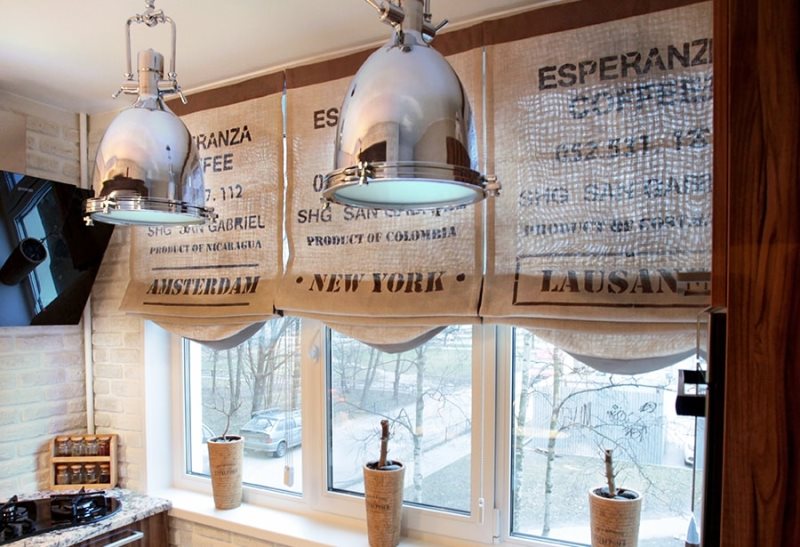 كخيار: إذا كان الخيش يذهل لك كمواد خشن للغاية ، فيمكن صنع الستائر من قماش الكتان السميك. سيبدو "ليونة" ، وسيتم الحفاظ على نمط المنزل.