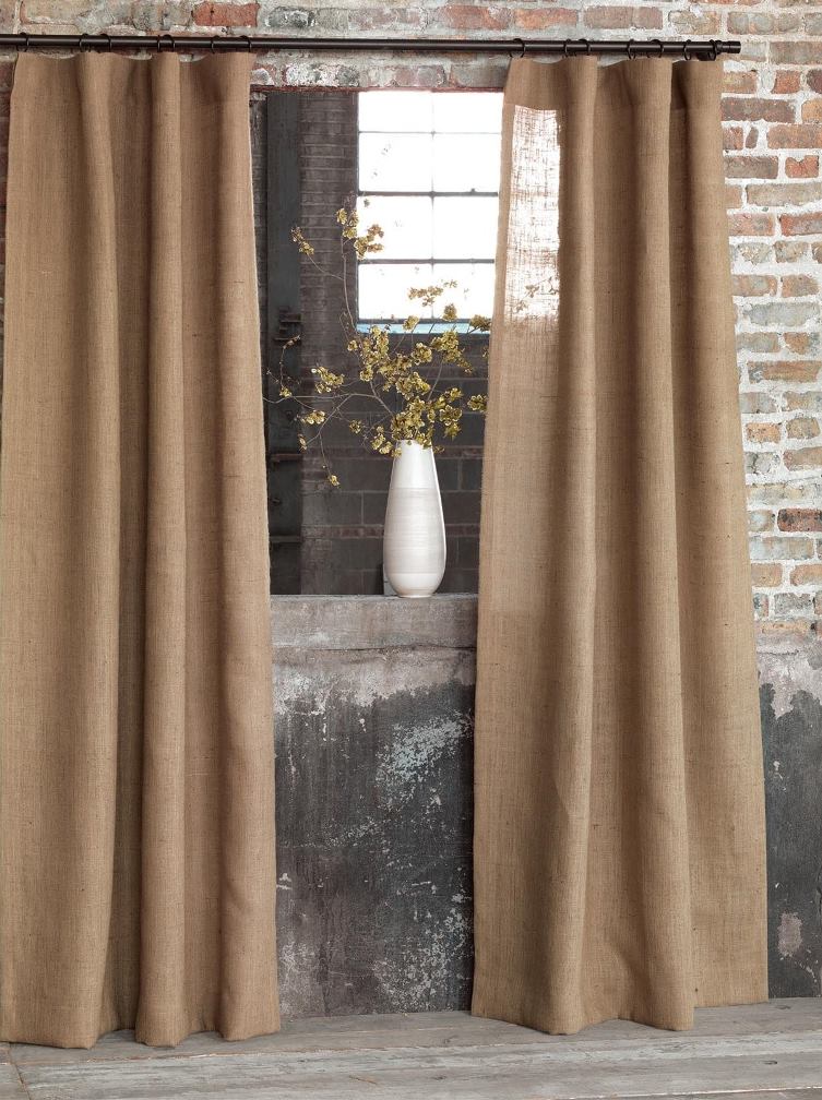 ستائر من الخيش الخشن الخشنة إلى حد ما ، ولكنها أنيقة وطبيعية بالكامل تجلب الراحة الخاصة والسحر إلى الداخل.
