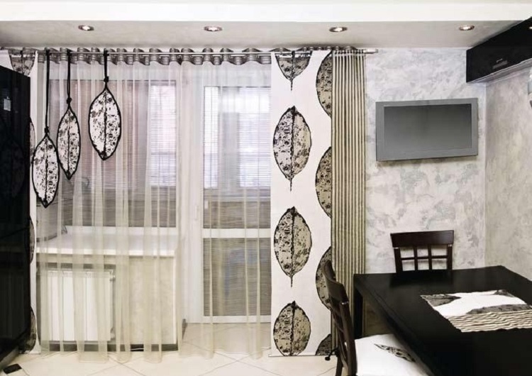 من الأفضل عدم استخدام نماذج الستائر متعددة الطبقات والتخلي عن الستائر واللف. ولكن أصحاب الأصلي للستائر تكمل مفهوم التصميم.