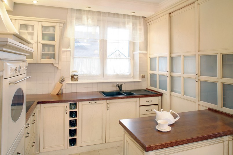 الستائر الرومانية: التصميم في الداخل من المطبخ ، الصورة