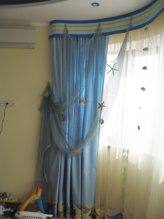 هذه الستائر تكمل تمامًا الطراز الريفي أو الطراز الريفي المحبوب. إنها تكمِّل الستائر الكلاسيكية تمامًا وستنظر بشكل متناغم في اتجاهات التصميم الحديثة (التكنولوجيا الفائقة ، والبساطة). وكذلك في التصميمات الداخلية مع تصميم علوي أو البنائية. هذه الاتجاهات "لا تتسامح" مع المنسوجات. شبكة كبيرة تشبه القليل جدا من القماش المنسوج المعتاد. علاوة على ذلك ، إنها الشبكة الكبيرة التي تُستخدم غالبًا للتصميم الداخلي بأسلوب بحري. إذا وضعت "كائنات بحرية" وزخارف بحرية في الزنزانات ، فإن غرفة الأطفال أو غرفة النوم تتحول على الفور.
