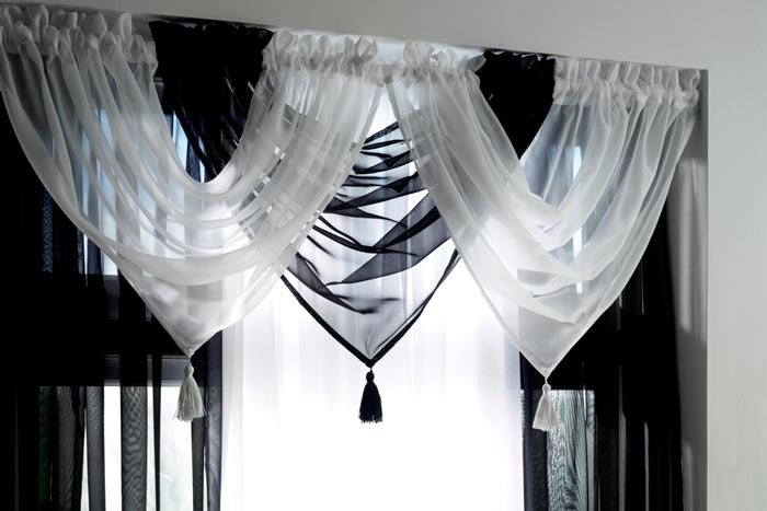 يسمح تصميم الستائر من هذه المادة بتجسيد الأفكار الأكثر جرأة ، وخلق تصميمات داخلية جميلة بشكل غير عادي.