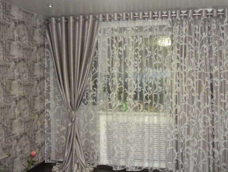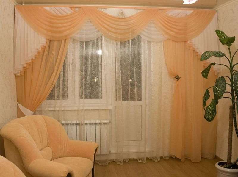 لتحقيق أقصى قدر من الوئام "ستائر + ستارة" ، يمكنك استخدام الجاكار الكثيف للستائر وحجاب الجاكار كتول.