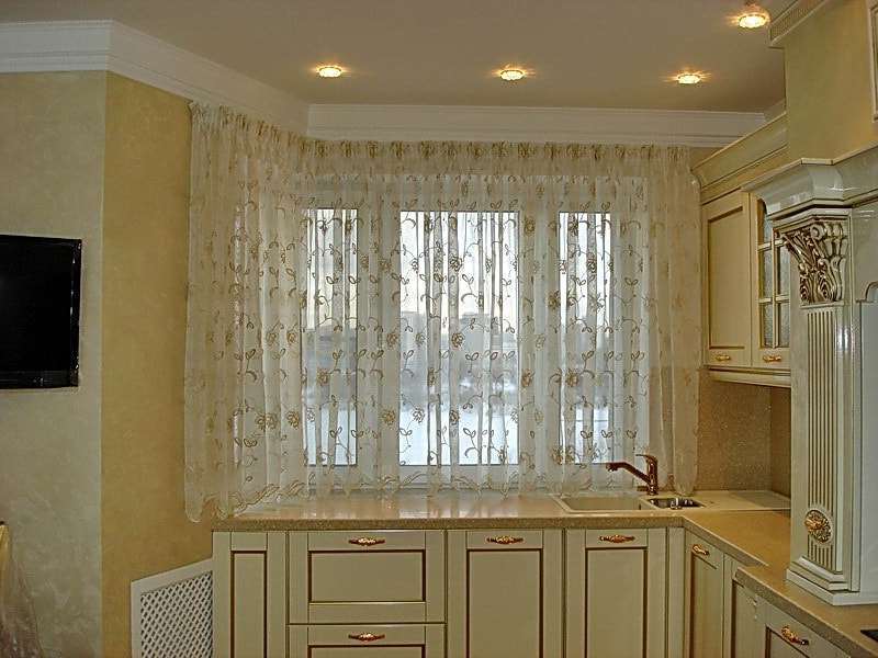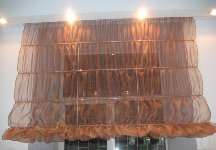 لحسن الحظ ، فإن الأوقات التي حاولت فيها ربات البيوت تعليق أكثر الستائر متواضعة في المطبخ قد غرقت في غياهب النسيان. اليوم ، المطبخ عبارة عن غرفة أنيقة حيث تريد المرأة أن تشعر بأنها ملكة حتى أثناء طهو العشاء. والستائر مصممة لتعزيز هذه المشاعر.