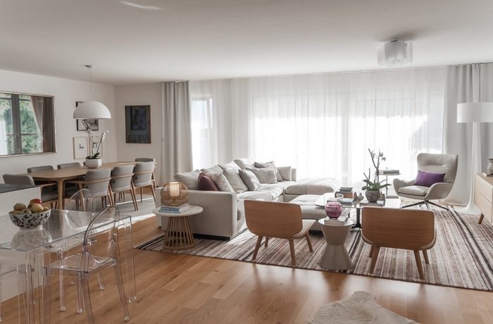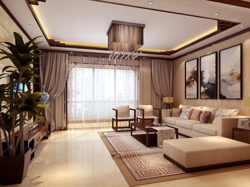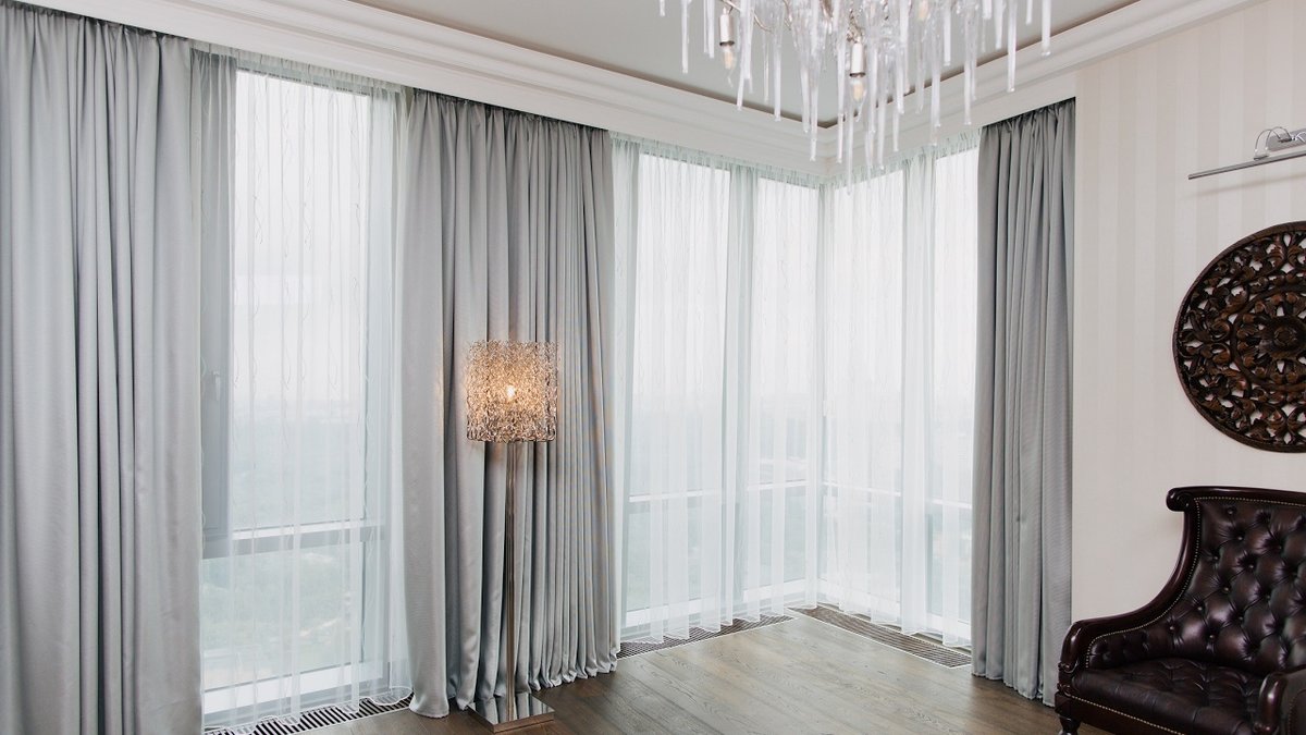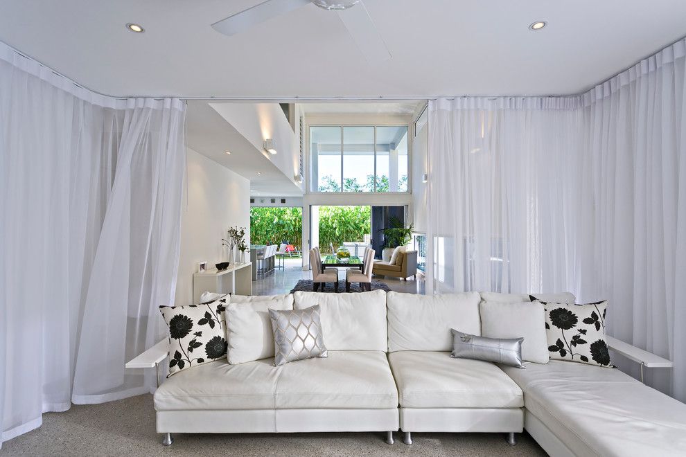 ستائر غرفة المعيشة من القماش الخفيف تبدو أنيقة وتجتذب الانتباه.
