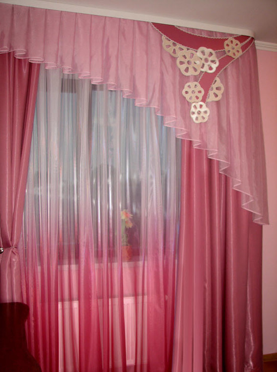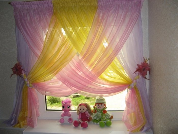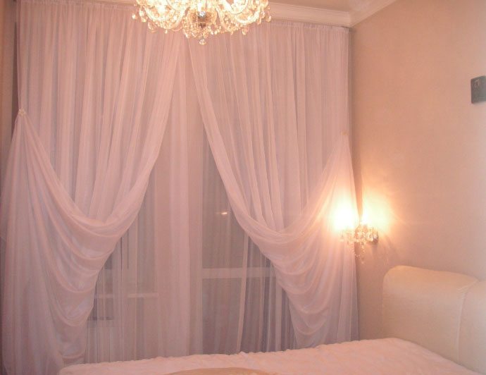 بفضل ستائر الحجاب ، يمكنك التخلي عن النماذج التقليدية والقيام بشيء يعجب بآراء وعقول. على صورة ستائر من حجاب وردتين للقاعة. يضمن هذا النسيج الخفيف أنه حتى الأفكار الأكثر جرأة لن تبدو مشرقة وغير مناسبة.