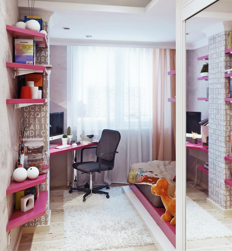 على الرغم من أن الحجاب المصغر يسمح لك بإنشاء تصميمات معقدة مختلفة من الستائر ، إلا أن اللوحات الطويلة المغطاة بالقليل من القماش ، والتي تنخفض إلى الأرض ، لا تزال تحظى بشعبية كبيرة. microvail يختلف في المطبوعات مشرق. يوجد في الصورة ستارة بمقياس وردي أرجواني ، لتكرار لون الجدران.