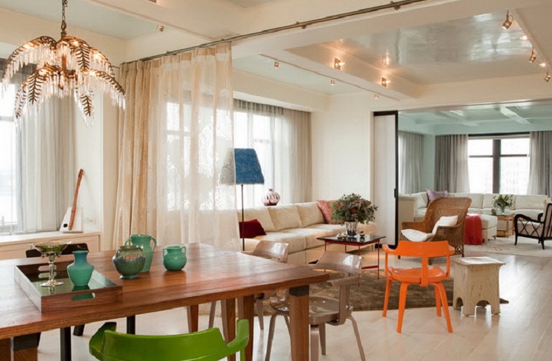قدرة فريدة لتبدو مذهلة في المقابل. مزيج من الأزرق والأحمر والأصفر وتكرار هذا اللون مزيج على الأثاث يجعل الداخلية مشرق.