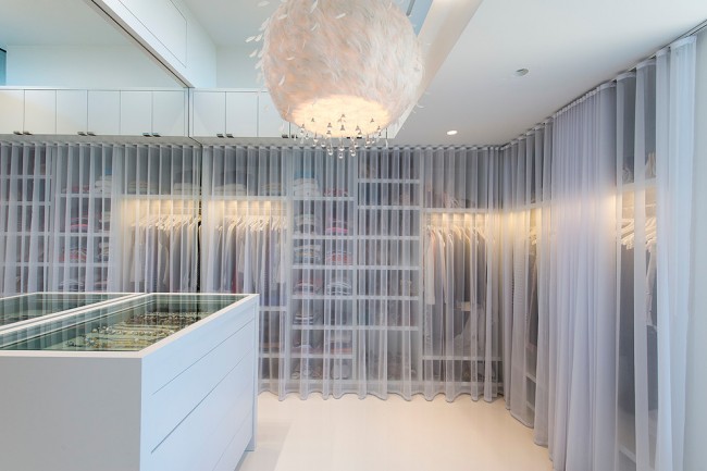 ستقوم طبقتان داخل غرفة المعيشة بطبقتين من حجاب الثلج الأبيض مع الأقمشة المثيرة وترتيب غير عادي من الأقمشة.