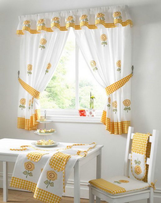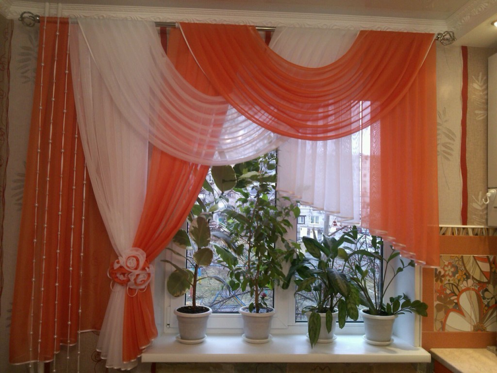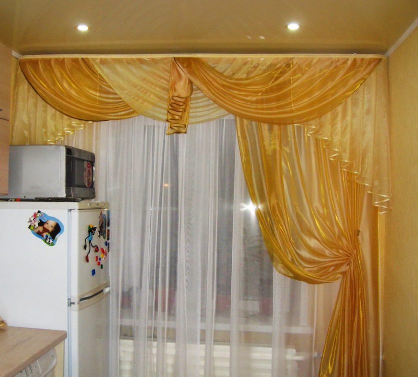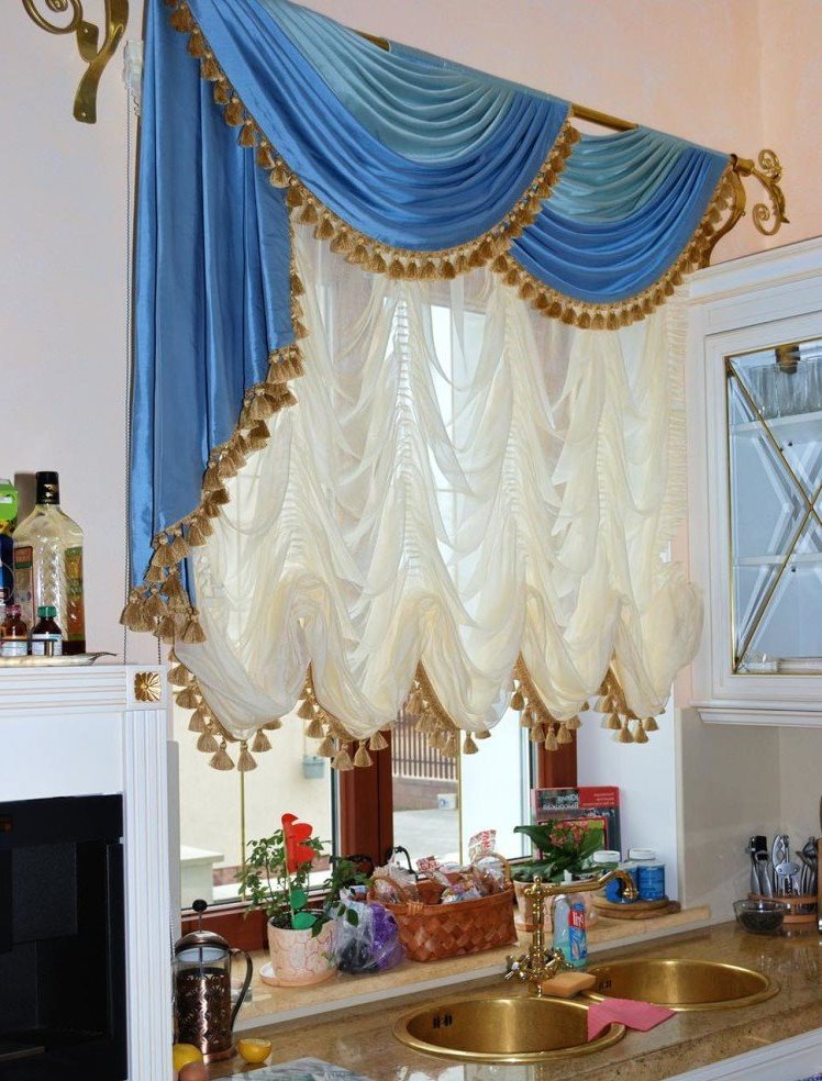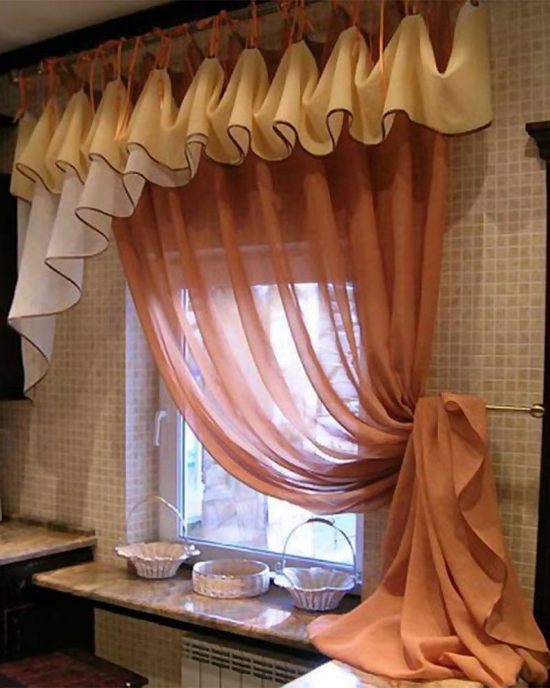 - يجب أن تكون الستائر في المطبخ مع lambrequin لينة ، دون مختلف svagov ، العلاقات ، زخرفة.