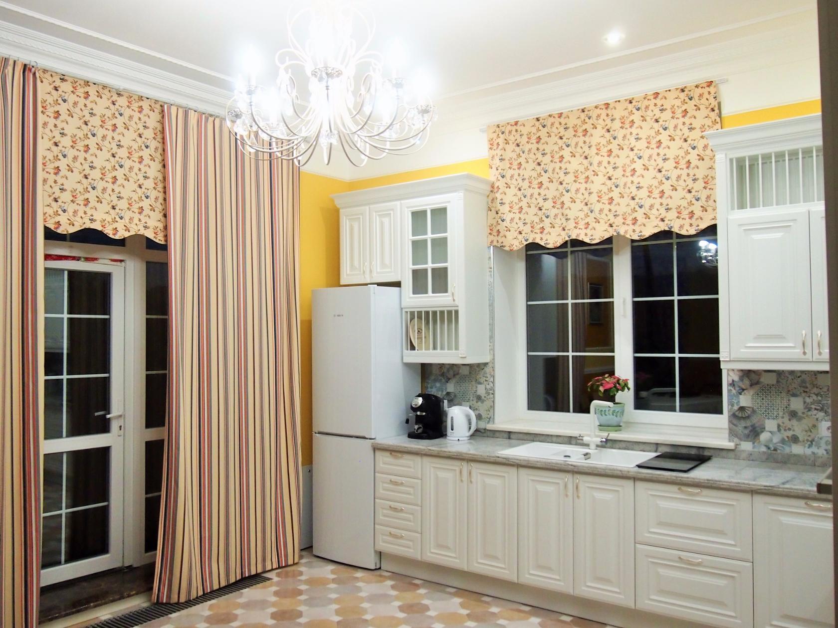 - 2.2 ستائر مع لامبريكين إلى المطبخ ، أمثلة في داخل المطبخ ، صورة