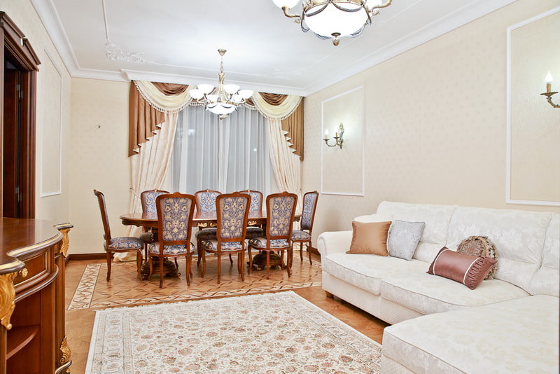 - إذا كانت مصنوعة على الطراز الكلاسيكي ، فمن المستحسن أن تولي اهتماما لمجموعات معقدة ، بما في ذلك سوجس ، العلاقات ، شرابات الزخرفية ، والهامش.