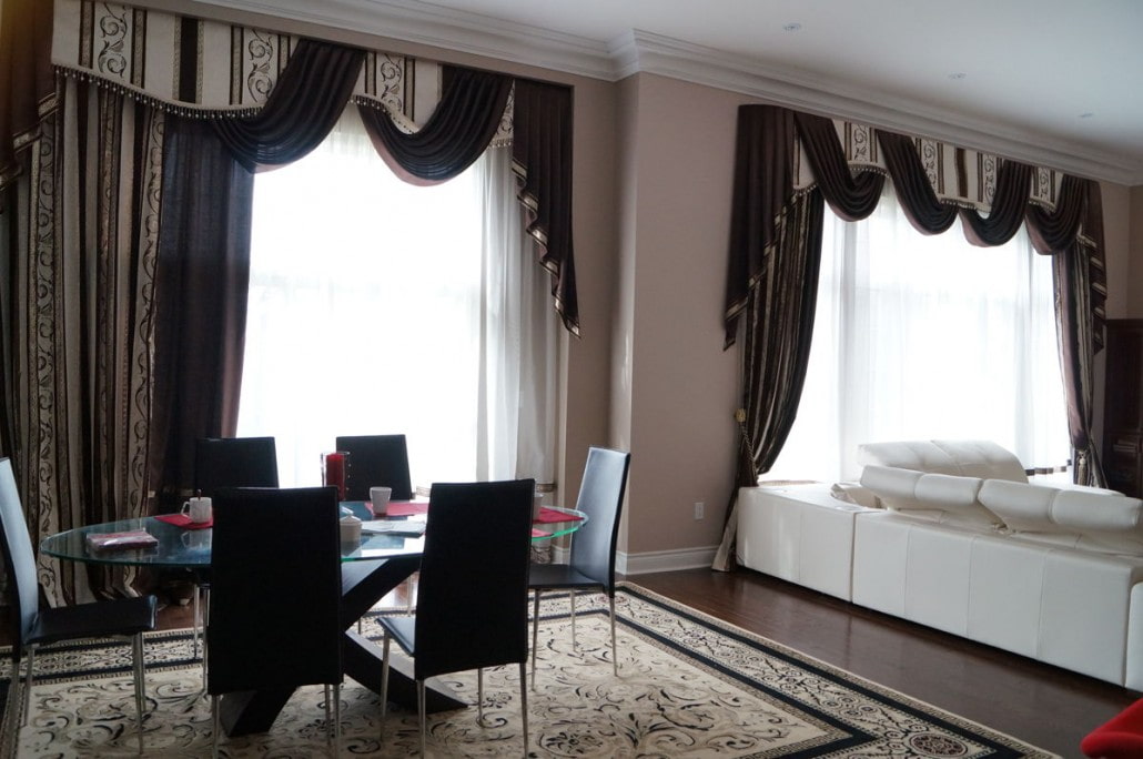مراجعة الستائر مع لامبريكين للقاعة والمطبخ وغرفة الرسم