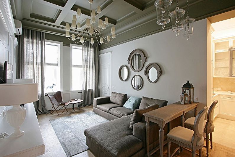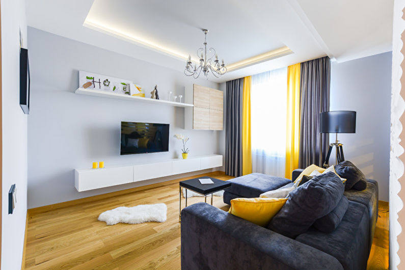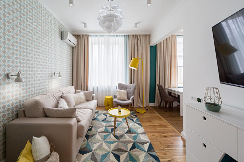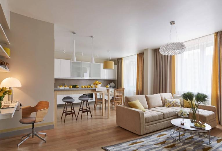 لا تحتوي الشقق النموذجية على مساحة كبيرة وسقوف عالية ، وبالتالي ، لجعل غرفة المعيشة جذابة و "فسيح" تحتاج إلى تذكر القواعد التالية: