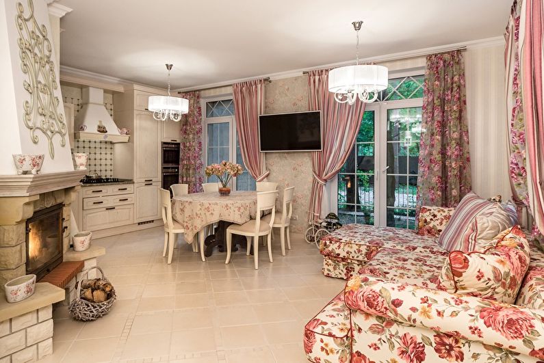 لا ينصح المصممون باستخدام الأقمشة الثقيلة والألوان الزاهية جدًا لهذا النمط.يوصى باستخدام الأقمشة الطبيعية: الحرير والكتان والقطن.