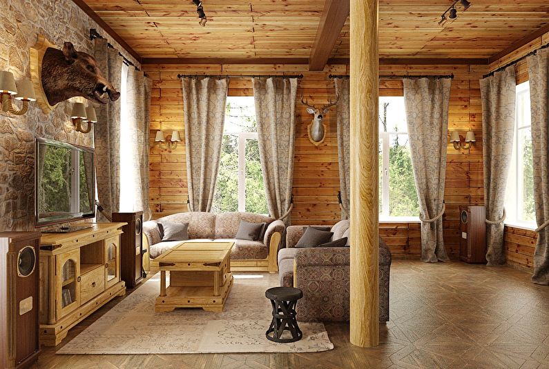 - 7 ستائر مزدوجة وثلاثية في القاعة: الوصف ، الصورة