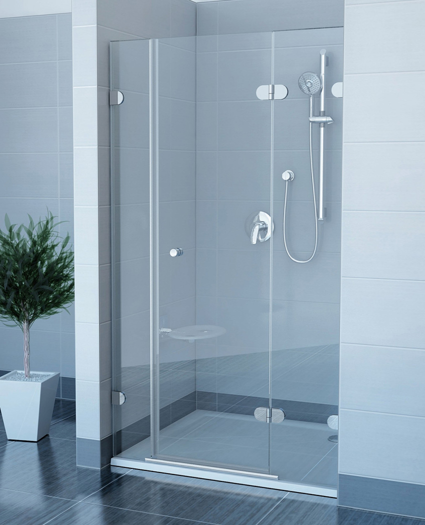 أبواب الأرجوحة معلقة ، مثبتة على قماش ثابت على جوانب الهيكل بأكمله. خيار كبير للحمامات الكبيرة ، ولكن في مساحة صغيرة سيكون زائدا عن الحاجة. تتحرك الأبواب على بكرات على قضبان مدمجة ، أو تتأرجح مفتوحة بالطريقة المعتادة.