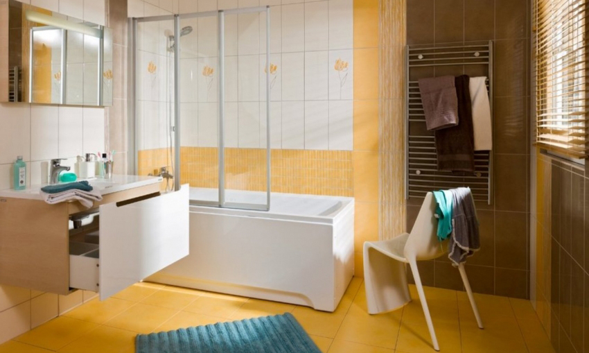 أبسط الستار الزجاجي هو قماش لا يغطي كامل الحمام ، ولكن فقط الجزء الذي يوجد فيه الحمام.