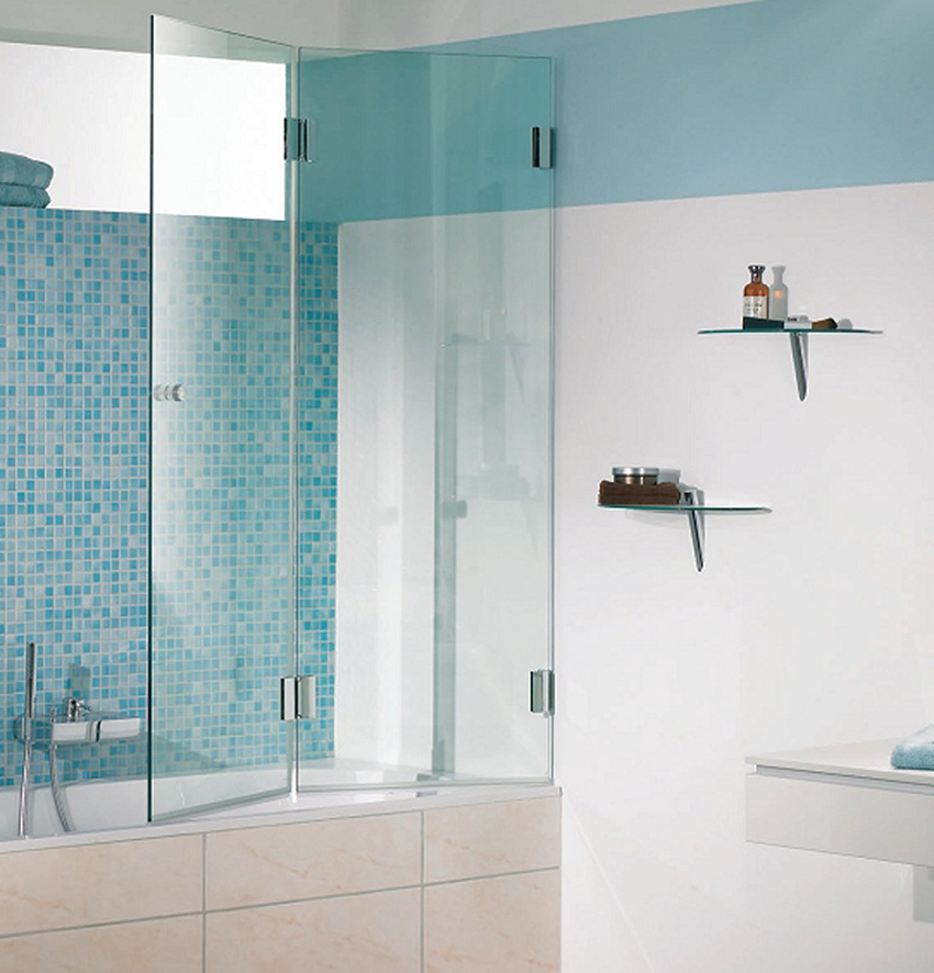 ستائر زجاجية للحمام - مكلفة ، ولكن المواد الأكثر عملية. مصنوع من الزجاج المقسى ، لأن السياج مقاوم لأي تأثير خارجي. بالطبع ، يمكنك كسرها ، ولكن فقط إذا تغلبت عليها بشكل هادف وعدة مرات.