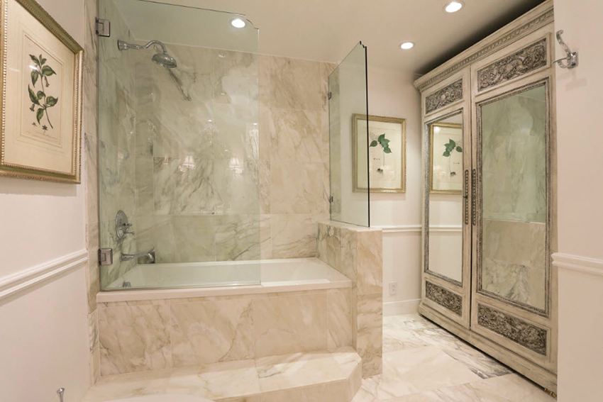 الزجاج إلى الحمام بدلا من الستائر