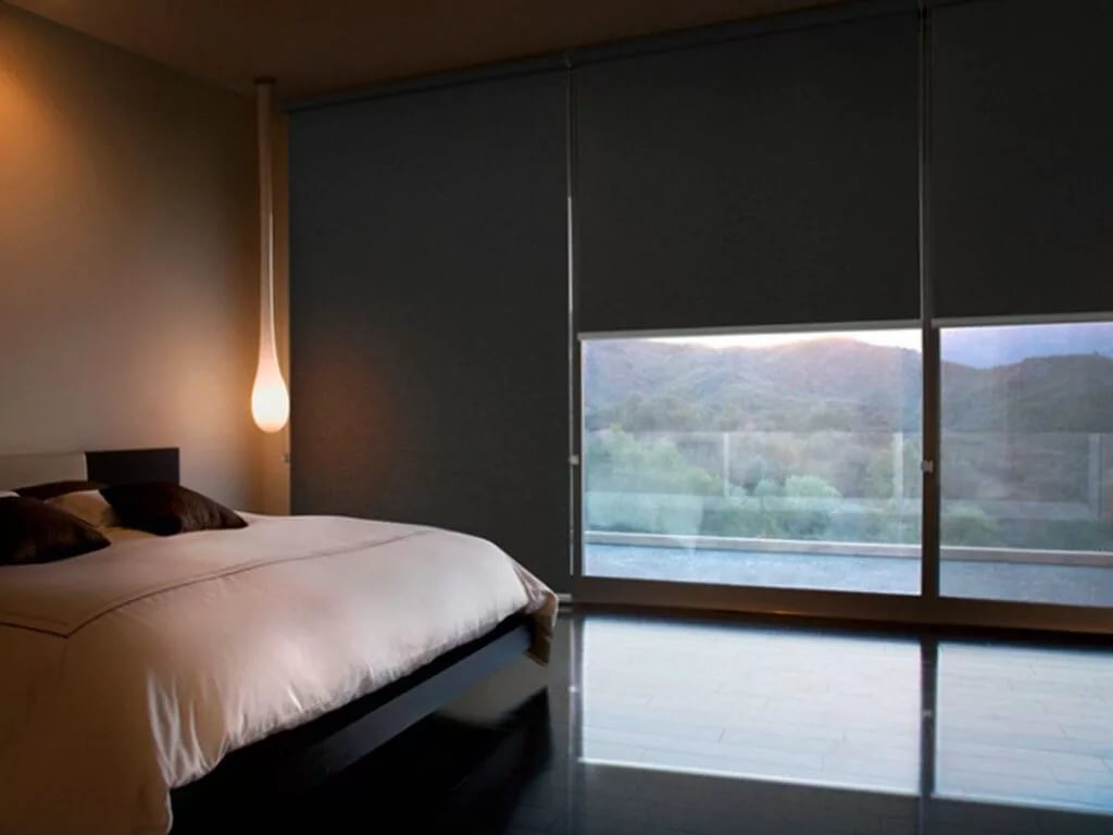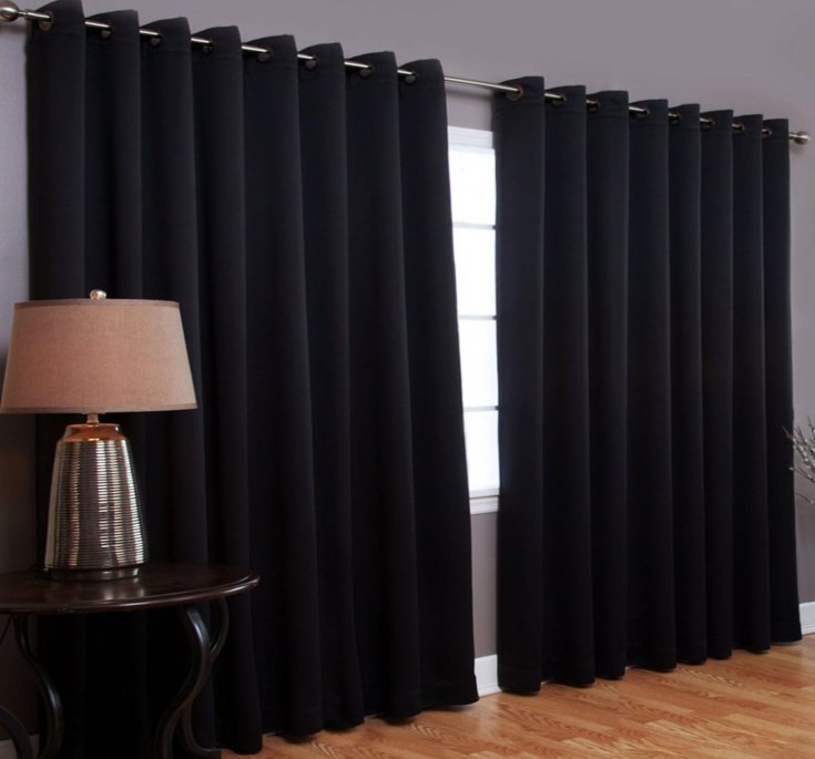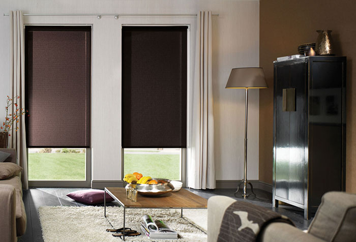 تُظهر الصورة نموذجًا للستائر المدلفنة من القماش الغامق.