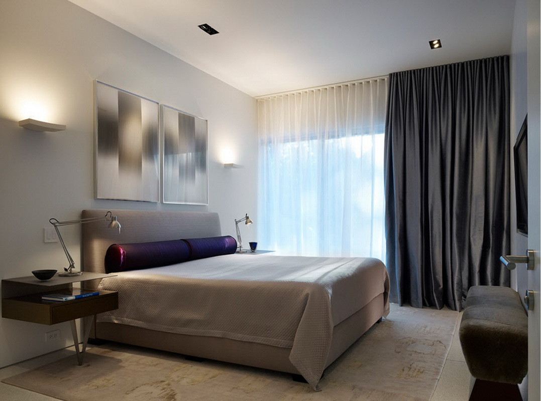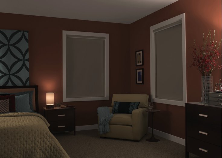 غرفة النوم هي مكان تكون فيه الحماية من الضوء مهمة بشكل خاص. لذلك ، بالنسبة للداخل ، لا يتم استخدام قماش التعتيم فقط ، ولكن يتم أيضًا اختيار نماذج الستائر التي تغطي النافذة قدر الإمكان. وتشمل هذه الخيارات الستائر الدوارة واللوحات الرومانية واليابانية.