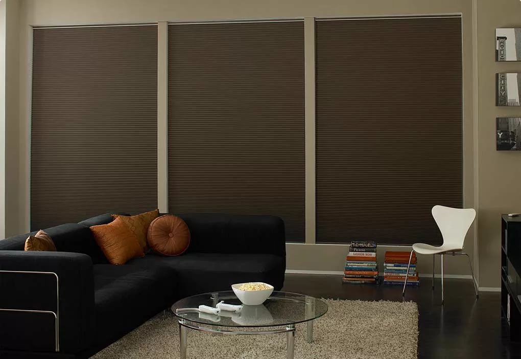 في المناطق الداخلية من غرفة المعيشة قد تصبح ستائر التعتيم لؤلؤة تجذب الانتباه.