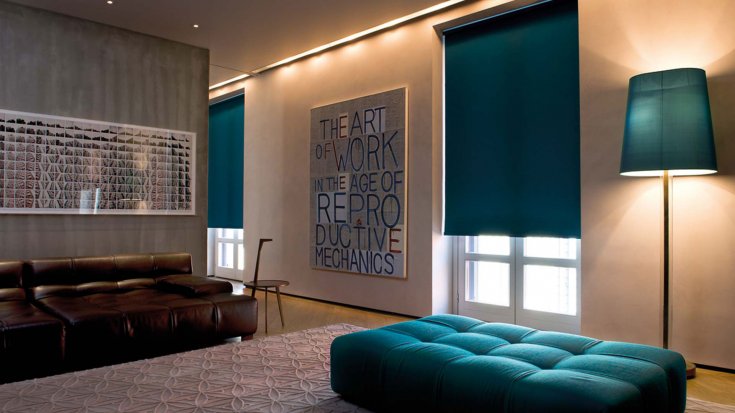 الستائر الدوارة تكملها الستائر الكلاسيكية. حماية مضمونة من الضوء.