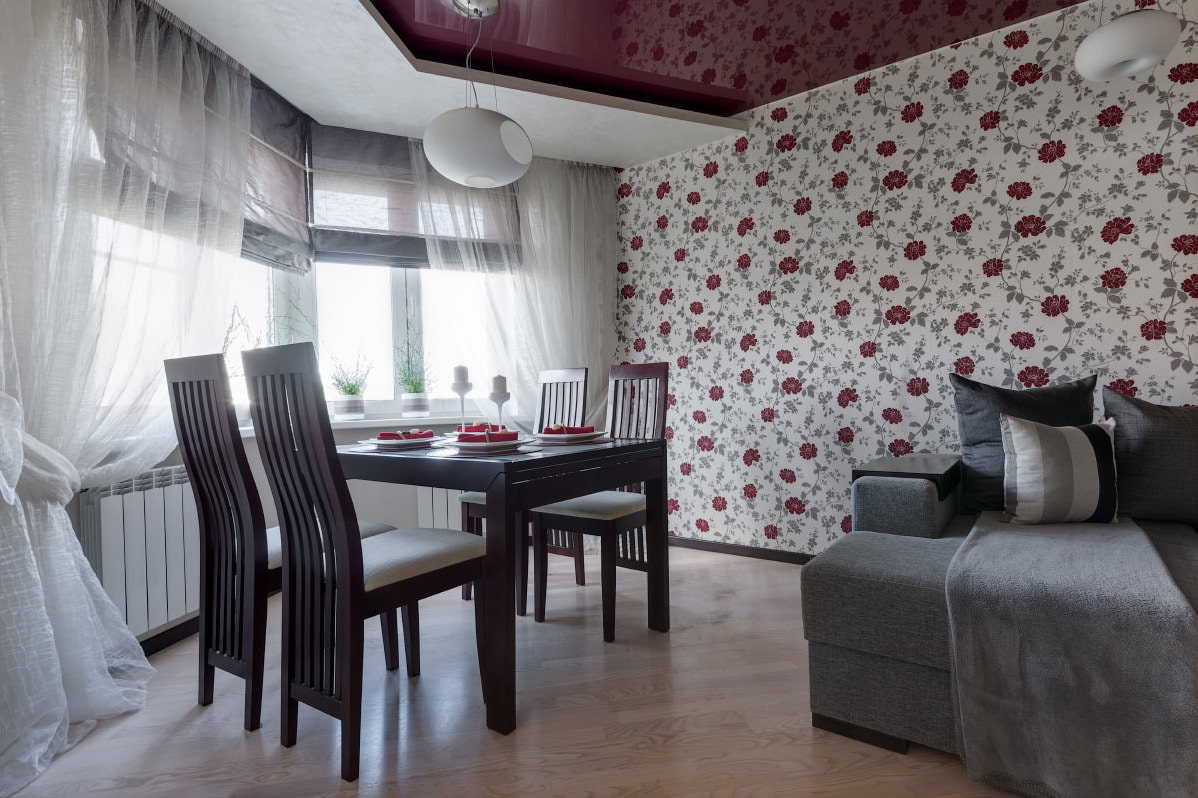 في الغرف الكبيرة ، يمكن الجمع بين الألوان والظلال المتناقضة. يمكن توسيع الغرف الضيقة بصريًا مع خطوط أفقية تول.