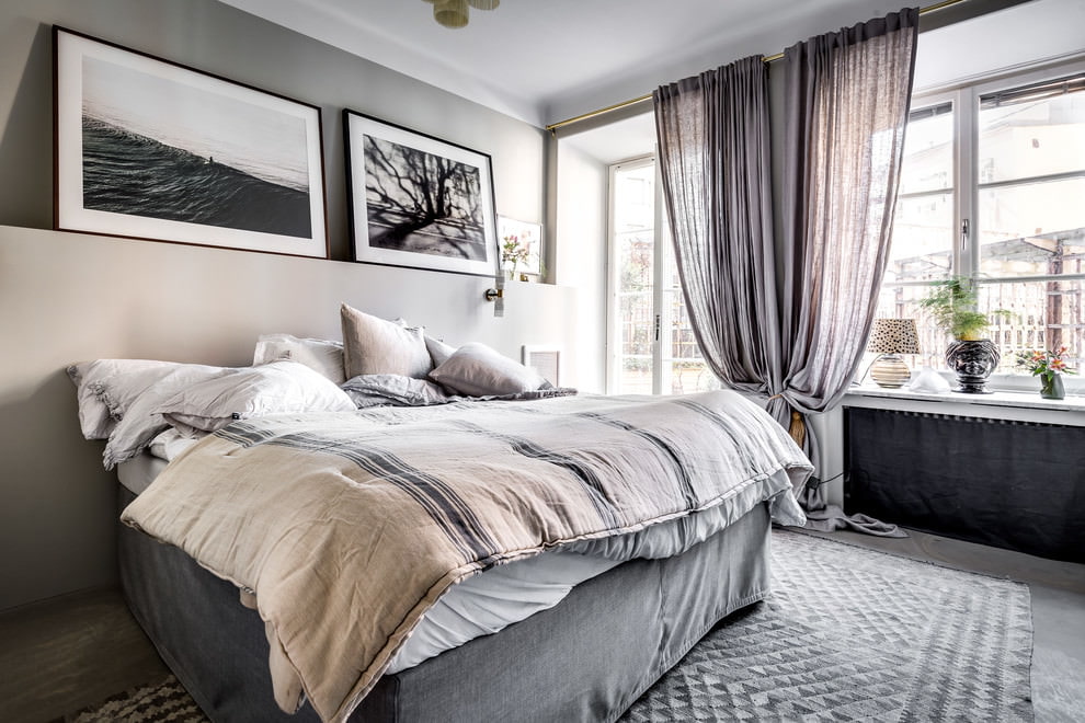 تلميح! إذا كان ارتفاع الأسقف صغيرًا ، فمن المنطقي أن نعلق الستارة بالسقف ، مما يساعد على زيادة ارتفاع الغرفة بصريًا.